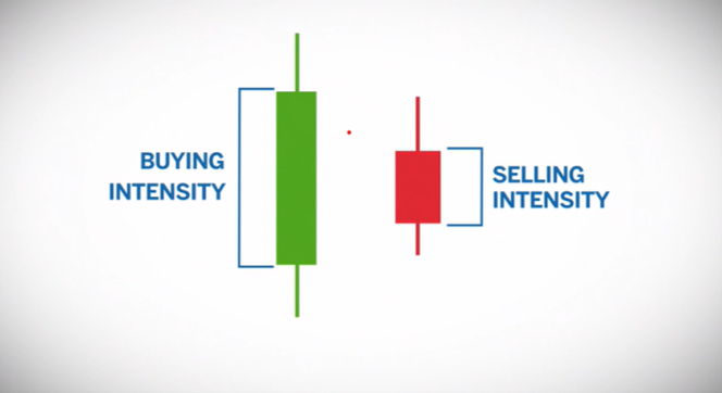 Candlestick charts allow traders to visualize buying and selling pressure in two ways: