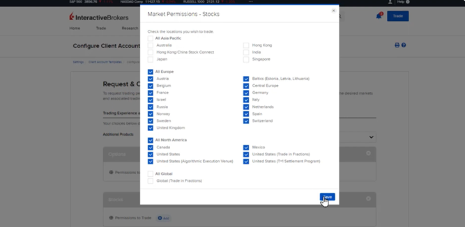 Next, IBs can select the products and regions to trade in the template account trading permissions by clicking “Add” button under each product and click the Save button.