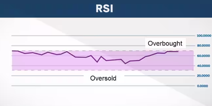 • Relative Strength Index: If the RSI is over 70, this is generally seen as over-bought and price might move down. A reading of 30 indicates a market that is over-sold and price might move up.