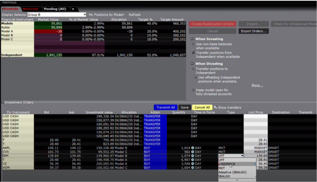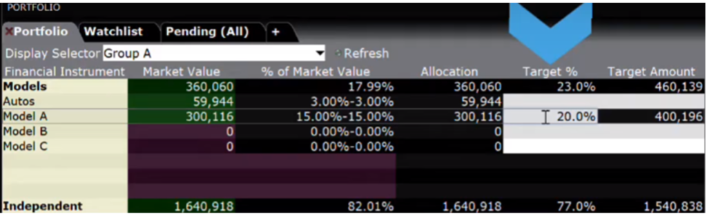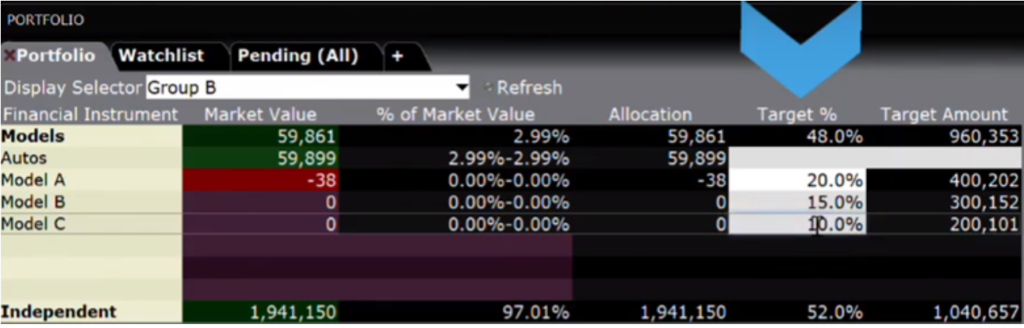 After the orders are created, the order type, time in force, price, and destination can be changed. In the case that the user wants to reallocate funds to multiple models, the following steps must be done: