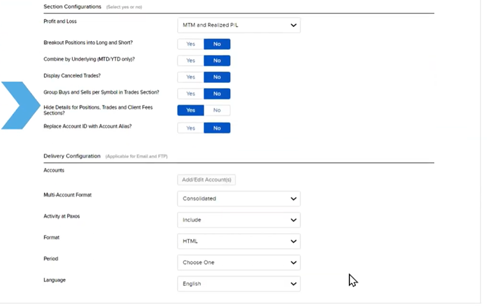 Both Default and Custom Statements can be automatically delivered to the broker. Default Statements can also be delivered directly to the client. Use the Statements Delivery panel for broker delivery configurations, and the Client Statements Delivery panel for client delivery configurations.
