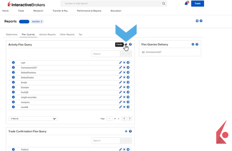 The Flex Queries tab allows for highly customized reports in XML, CSV, or Text formats, specifying exact data fields and their order. Create a custom Activity Flex Query by clicking the plus sign in the Activity Flex Query panel, naming the query, and selecting sections like Open Positions. Choose data columns, adjust their order, set delivery and configuration settings, and review the query before creating it. Flex Queries can also be enabled for automatic delivery.