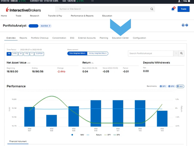 PortfolioAnalyst is a tool within Broker Portal that tracks and analyzes a client’s financial performance. Clients can link various accounts to understand their financial state and plan for the future. PortfolioAnalyst reports compare portfolio allocation and performance to over 300 benchmarks, and brokers can create custom benchmarks. Educational resources and courses on PortfolioAnalyst are available in the Traders’ Academy and Education Center tab.