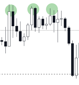 Double  – Triple Tops and Bottoms: The market makes two or three consecutive tops at around the same price level.