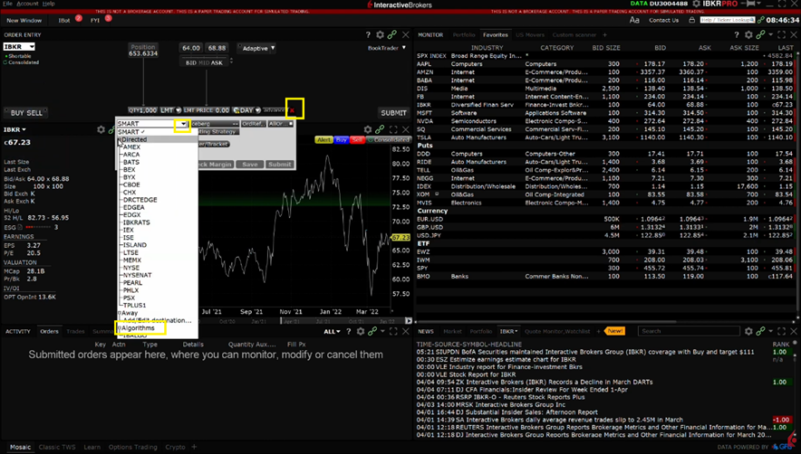 The IBKR SMART routing algorithm seeks to achieve the best overall price and continuously evaluates fast changing market conditions and dynamically re-routes all or parts of your order seeking to achieve optimal execution.