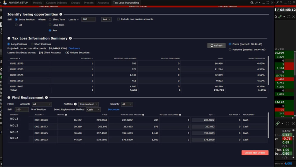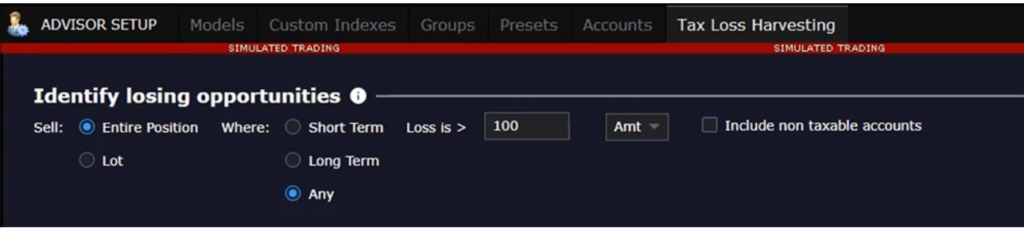 Client’s tax liability can be properly optimized using the Tax Loss Harvest tool in IBKR and the automation allows Advisors to harvest losses simultaneously across multiple client accounts especially if they are in a higher tax bracket.