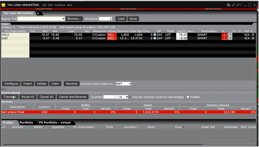 Crating orders in the IBKR Tax Loss Harvesting Tool