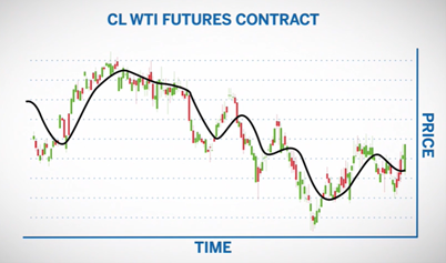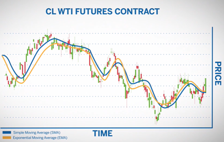 They consist of calculating the average of the prices of a financial asset over a specific period of time. Traders can use one or several moving averages on the same chart, allowing them to compare different timeframes. For example, a 14-day moving average of the CL WTI futures contract represents the average closing price of the CL contract over the last 14 days.
