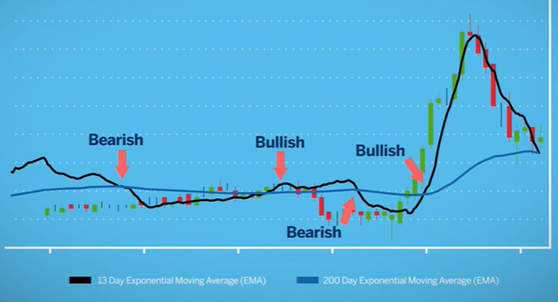 Exponential moving averages (EMAs) are a type of indicator used in technical analysis that assigns more weight to recent data and less to older data through a weighting multiplier. This makes them more sensitive to price changes and helps smooth out the chart line. Calculating an EMA involves determining an initial simple moving average (SMA), calculating a multiplier, and then using the current price along with the multiplier and the value of the previous EMA to obtain the new EMA value. For example, for a 14-day EMA, it can be calculated using today’s closing price and yesterday’s EMA value.